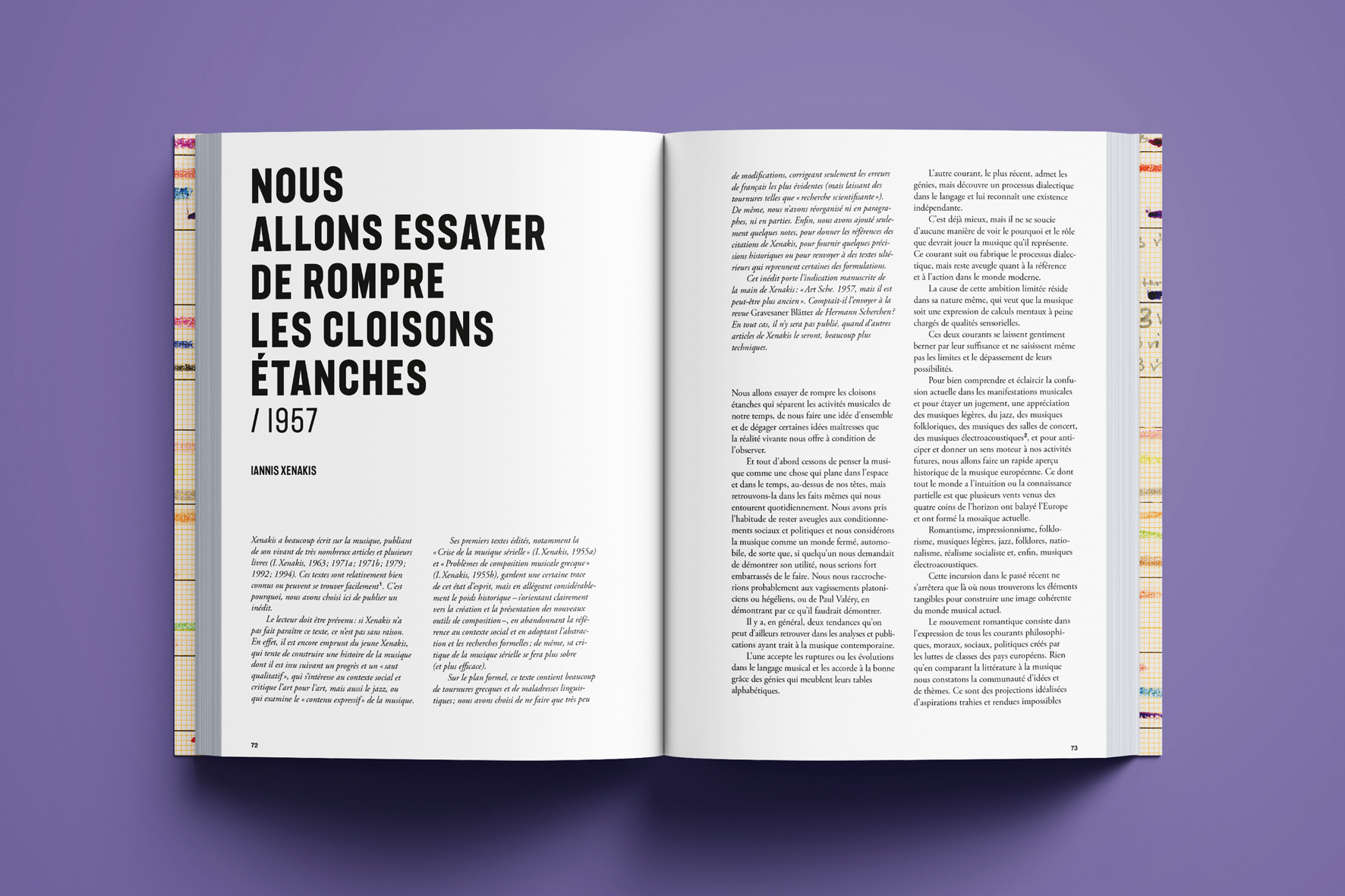 Le livre réunit des textes inédits de Iannis Xenakis, des entretiens ainsi qu’une conséquente iconographie composée à la fois de nombreux documents de travail, de partitions, de photographies...